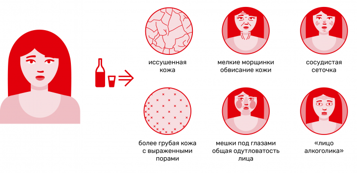 Алкоголь негативно влияет и на внешний вид, особенно женщин. Организм страдает от обезвоживания. Кожа становится сухой, цвет лица – серым, мутнеют белки глаз, ломаются волосы и ногти. Женский алкоголизм встречается реже, чем мужской. Однако на женщин алкоголь влияет намного «агрессивнее». К тому же, пристрастие к употреблению спиртных напитков, одна из главных причин бесплодия и выкидыша.