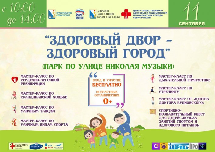 Вас ждёт: мастер-класс по сердечно-лёгочной реанимации, скандинавской ходьбе, уличным танцам, спортивно-познавательный квест для самых маленьких и многое другое.
