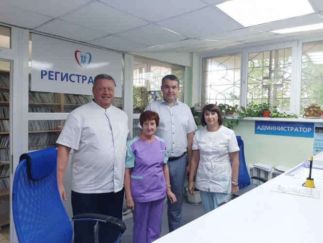 «Самое главное – штат поликлиники укомплектован достаточным количеством сотрудников. Стоматология обеспечена медицинскими работниками на 100%. Также проведено значительное обновление материальной базы: появились новые стоматологические установки, автоклавы, дефибрилляторы и рентгенодиагностический аппарат. Обновлена медицинская мебель.», - уточнил Виталий Денисов.Также Виталий Денисов пообщался с пациентами об условиях пребывания в учреждении, качестве оказываемой медицинской помощи. Во время обхода опросным методом оценены мнения самих пациентов о проводимом лечении, отношения к ним медицинского персонала, условия пребывания в поликлинике. Со слов пациентов, они довольны качеством лечения и внимательным обслуживанием медперсонала.