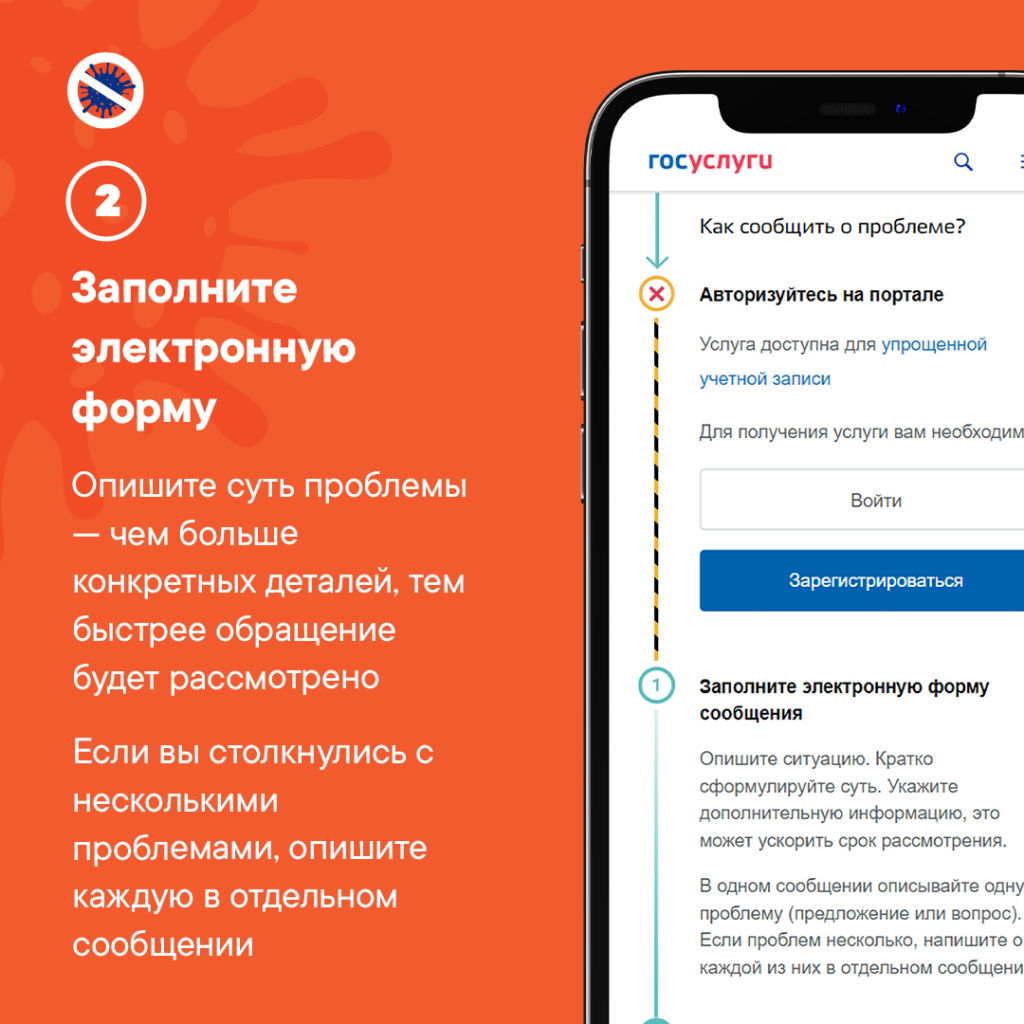 Сообщить о проблеме с вызовом скорой медицинской помощи, дозвоном в медучреждение, горячую линию COVID-19 на сайте Госуслуг: